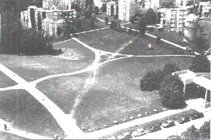 Wie das Design der von Landschaftsarchitekten angelegten Wege und das Muster der als nützlich empfundenen Wege voneinander abweichen, zeigt diese Luftaufnahme einer Grünfläche auf dem Uni-Campus in Stuttgart:
