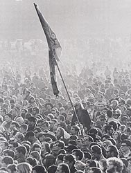 Das Be-In zog Tausende von Neuankömmlingen an. Die Atmosphäre in den Tagen davor war überwältigend. Überall tauchten "Willkommen"-Schilder auf auf schwarzen Brettern, in Fenstern, in der Untergrund-Presse. Jeder, der Sympathie für die Aktion hatte, war aufgerufen, zu kommen, eine Blume, ein Musikinstrument oder Glöckchen mitzubringen.